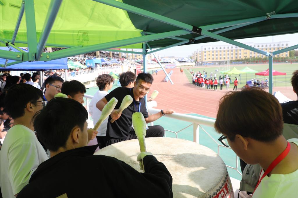 运动健儿在赛场挥洒汗水、奋力拼搏;观众席上气氛热烈、摇旗呐喊。观众们认真撰写加油稿,将真挚心声传递;志愿者们身着红色马甲,不畏烈日、默默奉献,为比赛提供了坚实的保障,成为学院一道靓丽风景线;鼓队助力的鼓声震耳欲聋,为运动员们注入拼搏底气。