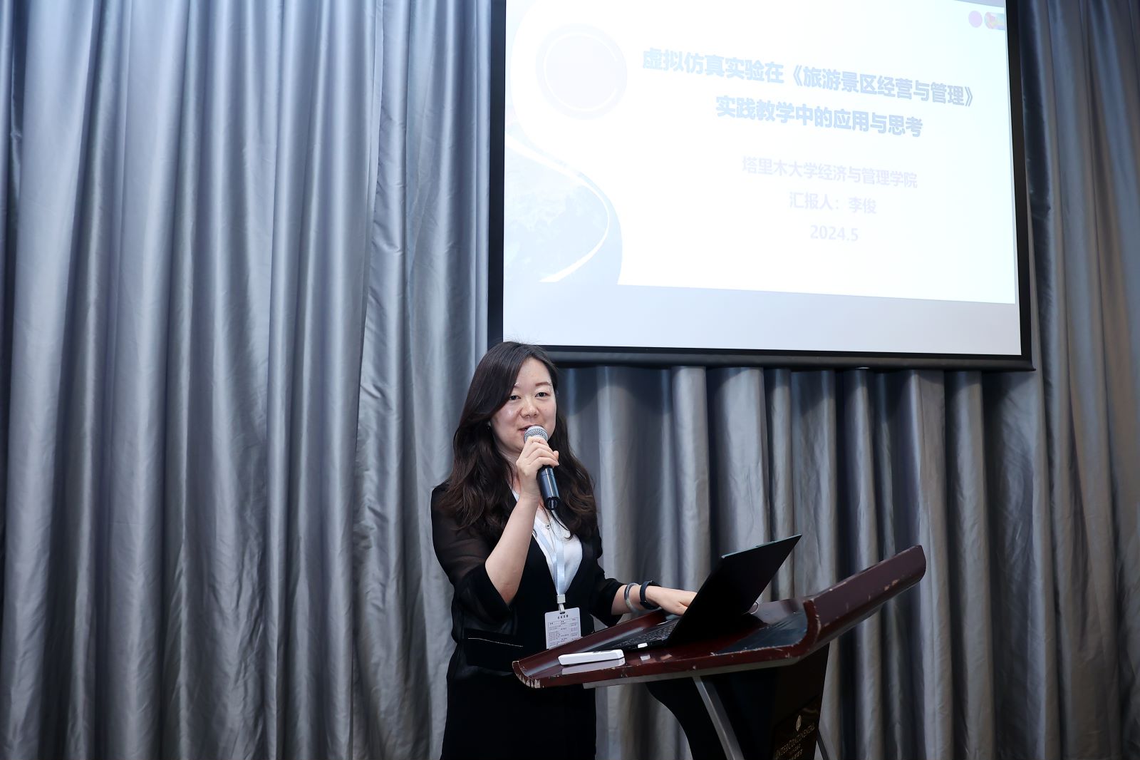 李俊在会议上做“虚拟仿真实验在《旅游景区经营与管理》实践教学中的应用与思考”的报告,在报告中李俊结合塔里木大学的办学特色和旅游管理专业的实践教学,对虚拟仿真技术在实践课程中的应用和出现的问题进行了阐述,提出新疆旅游景区数字化建设和人才需求的方向。报告得到点评嘉宾一致好评和大会总结高度认同。