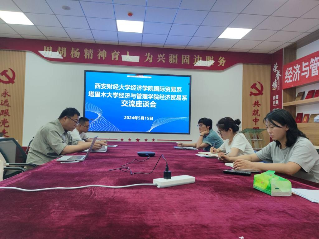 座谈会上,张武康对西安财经大学经济学院国贸系师资构成、专业建设、学生发展等方面的情况进行了介绍。苏旭峰介绍了我院经济贸易系的师资、专业构成和服务南疆地区的成果。在交流环节,西安财经大学经济学院国贸系教师针对我院教师在课程设置、实践教学、师资队伍建设等方面的需求和困惑,进行了深入分析和解答,为我院国际贸易专业建设提供了有益的建议和思路,