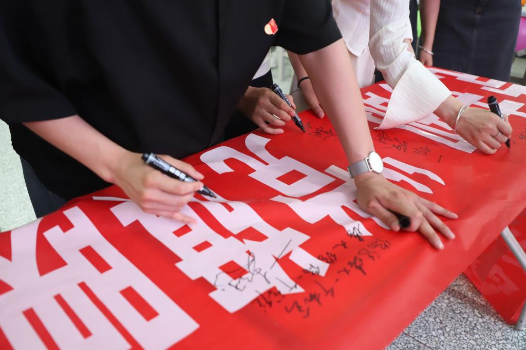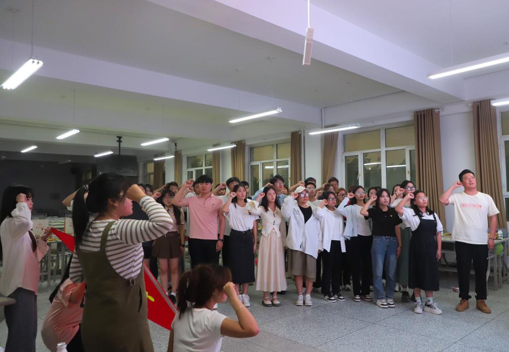 临近活动尾声,毕业生党员们纷纷在横幅上签名留下毕业寄语,组织委员黄天碧同志带领大家重温入党誓词,以初心敬党心,以誓言敬理想,以努力敬时光!