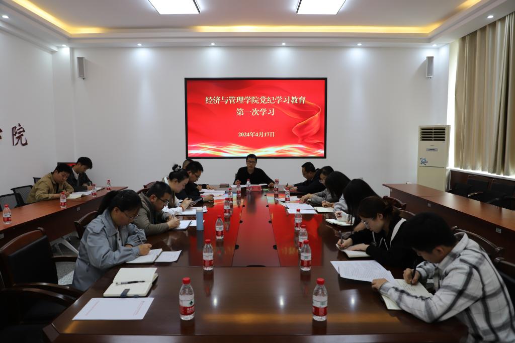 4月17日,经济与管理学院党委理论学习中心组在文科实验楼209会议室召开4月集体学习会议(扩大),围绕党纪学习教育进行专题学习。学院党委副书记、纪委书记朱哲主持会议,学院党委委员、各党支部书记、支委参加会议。