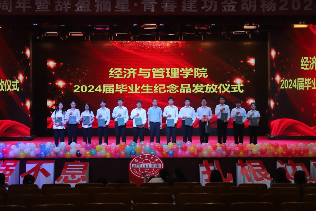 为了向即将踏上人生新征程的毕业生们表达深情厚意和美好祝愿,晚会还举行了毕业生纪念品发放仪式,由学院党委副书记朱哲亲自为毕业生代表们颁发纪念品,并与他们亲切握手、合影留念。朱哲副书记希望毕业生们能够牢记学院的教诲,勇于担当、奋发有为,为国家和社会的发展贡献自己的力量,同时,也希望毕业生们常回学院看看,共同见证学院和学校的繁荣与发展。