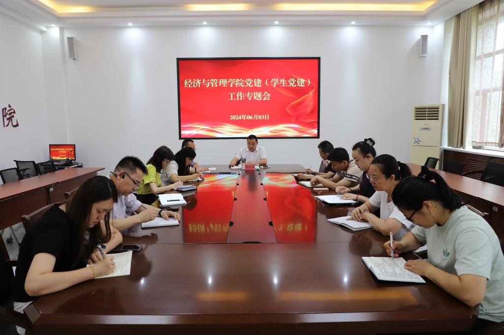 6月3日,经济与管理学院召开2024年度党建工作暨学生党建工作专题会议。学院党委书记蒋志辉主持会议并讲话,学院各基层党支部书记参加,会议在文科实验楼209会议室进行。