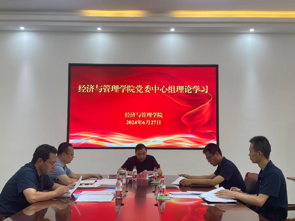 6月27日下午,经管院党委召开2024年第五次理论中心组集体学习暨研讨交流会,学院领导班子成员参会。会议由学院党委书记蒋志辉主持,在文科实验楼209会议室召开。