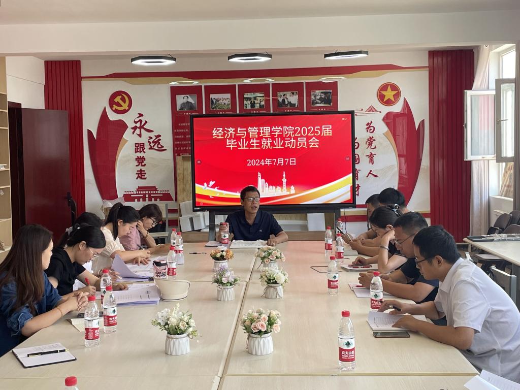 为有序推进学院2025届毕业生就业工作,充分服务毕业生高质量就业,2024年7月7日上午,经济与管理学院在西八宿舍楼胡杨导航辅导员工作室召开2025届毕业生就业动员会,全体2025届毕业班班主任及辅导员参会,会议由学院党委副书记、纪委书记朱哲主持。