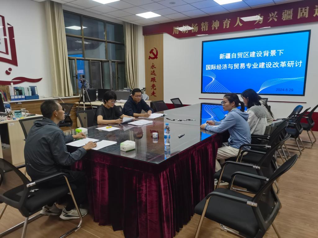 为更好服务中国(新疆)自由贸易试验区建设的人才需求(以下简称“自贸区”),2024年8月29日,国贸专业教师于新文科楼212室开展了关于专业建设改革与人才培养的深入研讨。研讨会邀请了经贸系教师党支部书记孙良斌参加,由专业负责人孙璐老师主持。