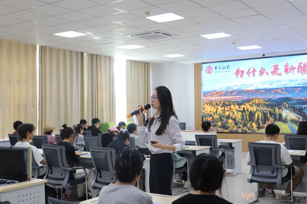 9月18日下午,中国银行股份有限公司新疆维吾尔自治区分行在文科实验楼402进行宣讲,中国银行新疆分行人力资源部招聘配置团队主管涂明双、阿克苏市东大街支行行长魏小燕、阿克苏分行人力资源经理贾蓓出席。本次宣讲会由涂明双主讲,经济与管理学院辅导员郁轩主持。
