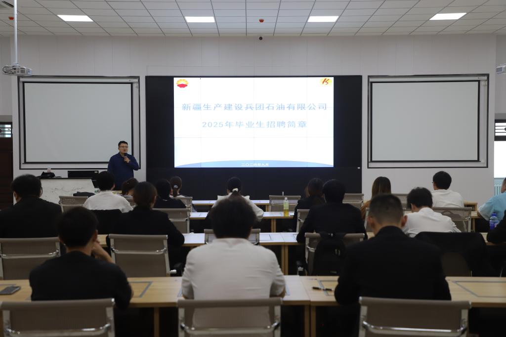 为深入学习贯彻习近平新时代中国特色社会主义思想和党的二十大精神,全面落实党中央、国务院对高校毕业生就业创业工作的决策部署,将优质企业引入校园,打通秋季毕业生求职路,推动就业。9月25日,经济与管理学院邀请了第一师阿拉尔市石油有限公司在文科实验楼503开展2024年秋季招聘宣讲会。新疆生产建设兵团石油有限公司人力资源部(党委组织部)科员马旭、第一师阿拉尔市石油有限公司财务总监王雪、新疆生产建设兵团石油有限公司人力资源部(党委组织部)副经理高波。本次宣讲会由马旭主讲,经济与管理学院辅导员郁轩主持。