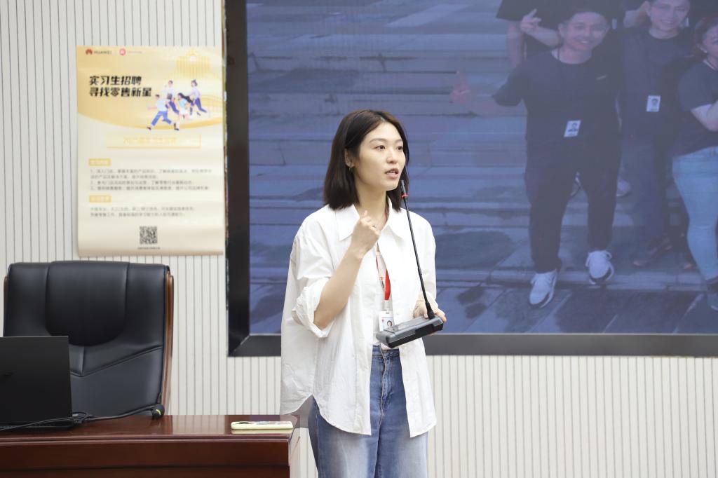会上,来自华为慧通新疆终端业务部阿和地区的宣讲人梁晓、刘帅及人力资源专员林小渝共同为同学们描绘了加入慧通商务的美好前景。梁晓指出,慧通商务自2019年以来,承接了华为终端BG面向消费者及合作伙伴的零售服务业务,并为员工提供了一个充满机遇和挑战的职业平台。