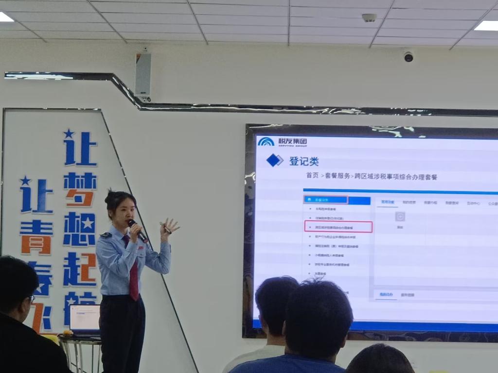 第二场讲座的主讲人是国家税务总局阿拉尔税务局纳税服务科一级行政执法员张玉萍。她带来了电子税务局零基础入门课,全面介绍了电子税务局的功能,让创业学生对这一便捷的税务办理平台有了更深入的了解。