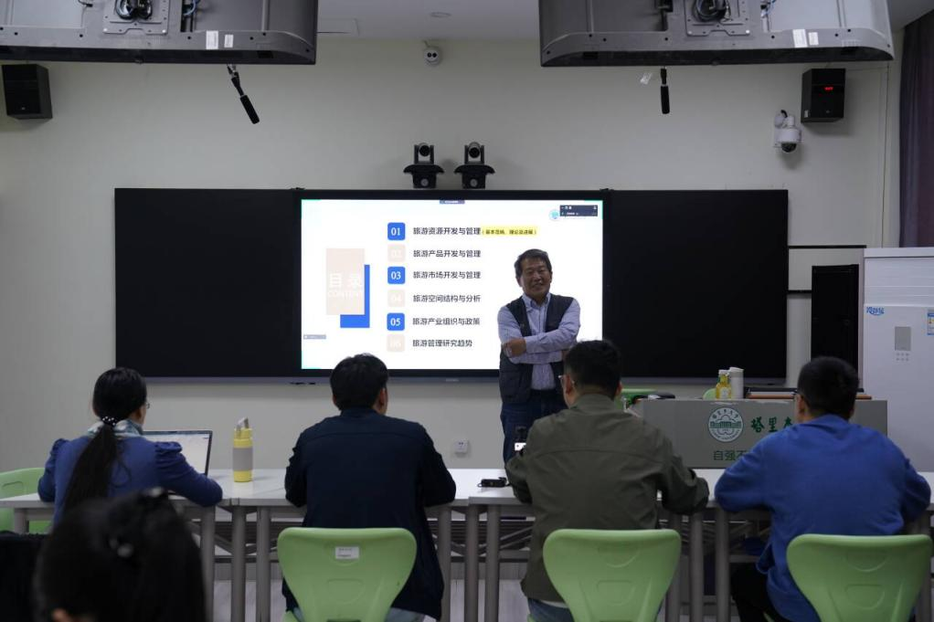 10月17日至19日,全国旅游管理专业硕士(MTA)教育指导委员会委员、教育部旅游管理类教学指导委员会委员、中国海洋大学MTA教育中心主任张广海教授,莅临塔里木大学,在综合楼106为旅游管理专业硕士研究生开展了为期3天的《旅游管理研究前沿与趋势》的授课,旅游管理2024级硕士研究生及旅游管理系全体教师全程听课学习。