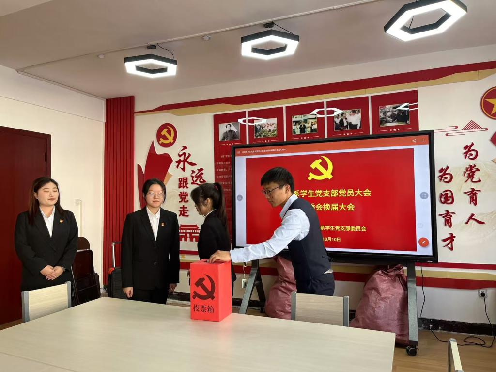 按照党支部换届选举程序,会议表决通过了选举办法、候选人预备人选名单、监票人和计票人名单。在第一轮选举中采用无记名差额选举办法选举产生了新一届支部委员会委员。选举完成后,经贸系学生党支部新一届党支部委员会召开了第一次全体会议,选举产生了党支部书记,并对党支部委员进行了分工。