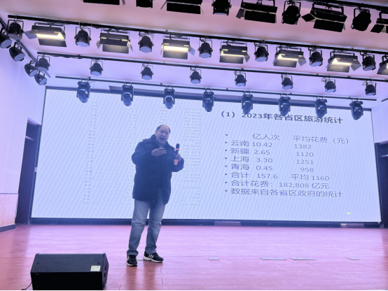 12月11日,东华大学银龄教师徐明在新文科楼518开展“旅游现状分析与前景思索”的讲座,旅游管理2024级、2023级、2022级全体本科生和旅游管理2024级专业硕士全日制研究生以及旅游管理系教师贾强、李俊、马丽霞参加了本次讲座。