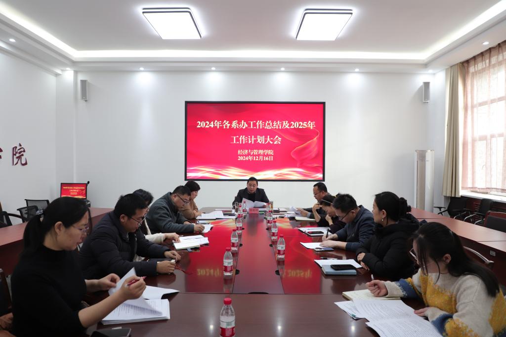 蒋志辉就学院2024年整体的工作给予肯定,就各系办工作的不足之处给出了建议。并强调,2025年工作任重道远,需要为学院博士点的申报,学科的建设打下坚实的基础,希望学院全体成员能够同心协力,砥砺奋进,为学院的建设,学校的建设做出新的更大贡献。