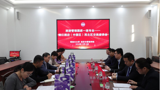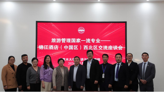 2024年12月19日,锦江酒店(中国区)西北区南疆片区省总李文龙、助理省总刘盛等一行五人莅临我院开展交流座谈会,经济与管理学院党委书记蒋志辉、副院长顾继岩出席座谈会。旅游管理系部分教师参会,系主任李俊主持座谈会。此次交流旨在深化校企合作,共谋旅游专业人才培养与行业发展的美好蓝图。座谈会在文科实验楼209举行。