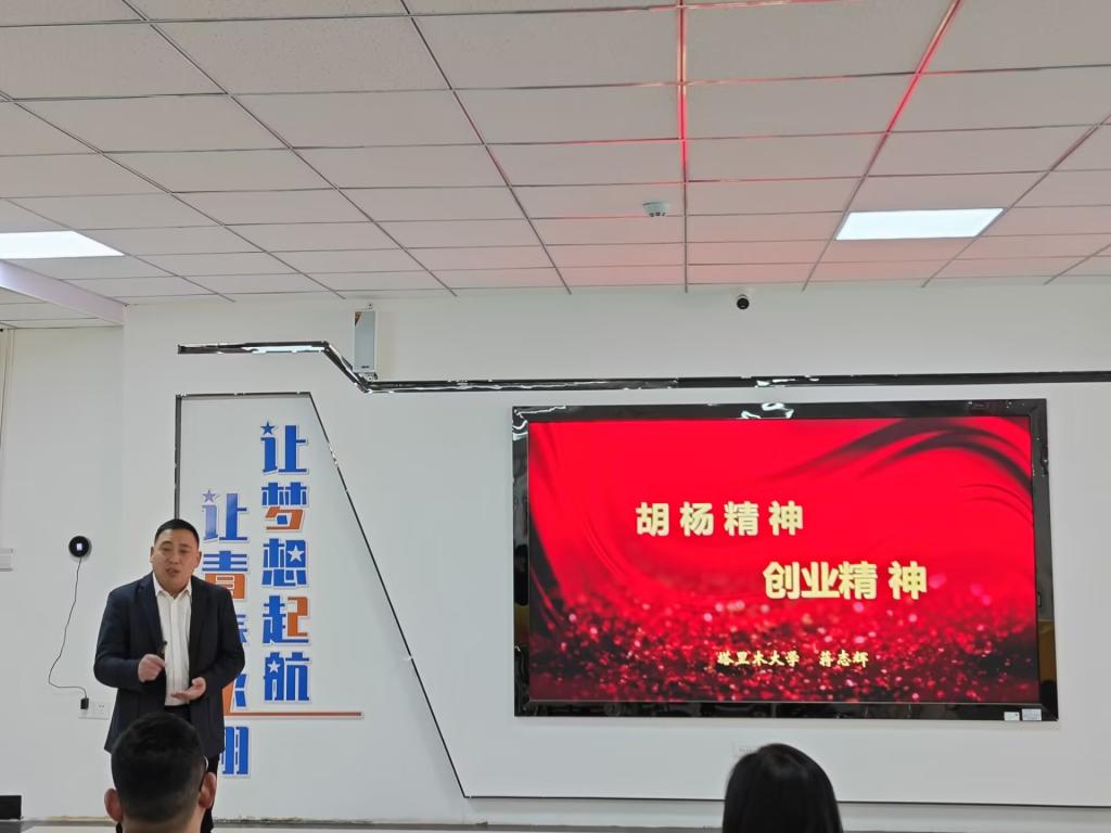 12月20日,经济与管理学院党委书记蒋志辉在创客空间开展了一场主题为“胡杨精神与创业精神”的精彩讲座。