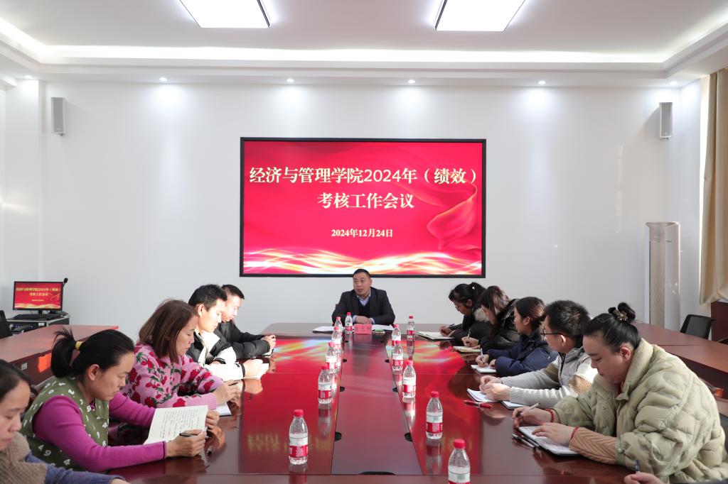 为认真贯彻落实学校考核工作通知,保质保量完成我院2024年考核工作。12月24日下午,经济与管理学院在新文科楼209会议室召开2024年(绩效)考核工作会议,办公室全体成员参加会议,会议由党委书记蒋志辉主持。