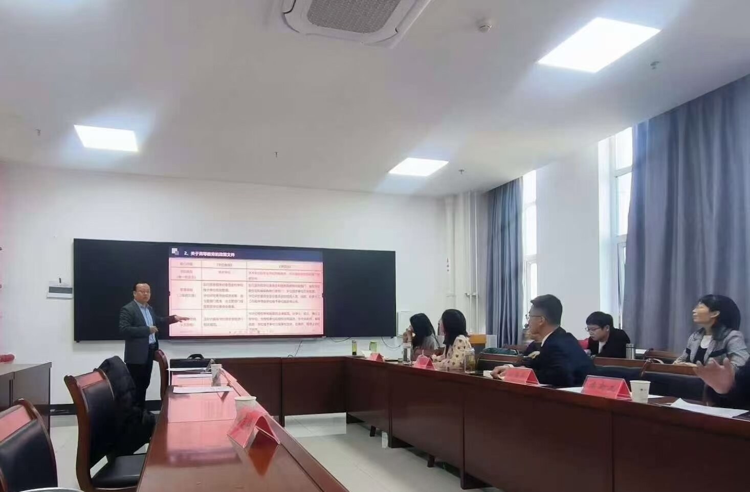 会上,晁伟鹏指出在目前的高等教育背景下,提升教学水平和教师素养等能力需要结合国家各部门出台的各种政策性文件。