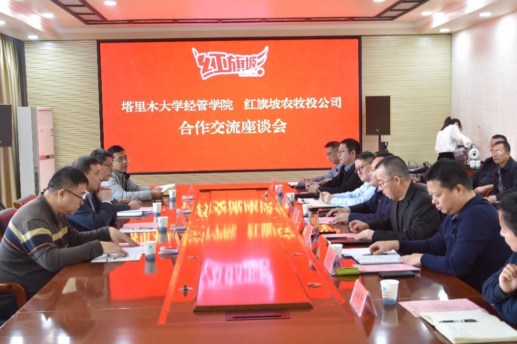 2月14日上午,塔里木大学经济与管理学院党委书记蒋志辉、副书记朱哲一行4人前往阿克苏红旗坡农牧投集团,就产学研合作、学生培养等展开深度交流。双方围绕自治区“十大产业集群”战略布局、农业产业重点工作等积极洽谈。农牧投集团党委书记、董事长王文彬、副书记、总经理姚仕林及全体干部参加了会议。