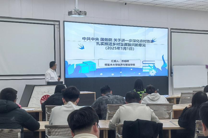 2月26日下午,经济与管理学院研究生第一党支部举行了“中央一号文件学习”微党课。本次微党课由支委粟双男主持,支部书记苏旭峰带领支部同志共同学习2025年中央一号文件。