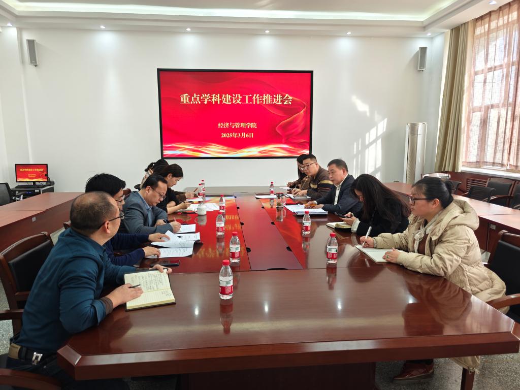 3月6日下午,经济与管理学院在文科实验楼会议室209开展重点学科建设工作推进会,会议由党委书记蒋志辉主持,党委委员、副院长李博,各学科带头人、学术带头人及科研办负责人参加会议。