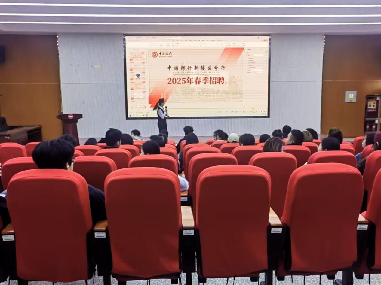 为切实推进 2025 届毕业生就业进程,全力达成毕业生高质量充分就业的目标,我院积极与用人单位建立紧密联系,全方位拓宽学生就业途径,力求为毕业生创造更多优质就业契机。2025年3月12日下午,我院与中国银行阿克苏分行开展2025年春季首场校园招聘宣讲会。