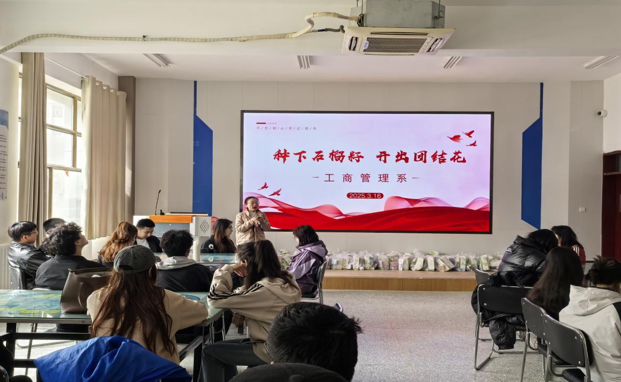 为深入贯彻落实习近平总书记关于民族工作重要论述精神,进一步加强民族团结进步教育,铸牢中华民族共同体意识,3月16日下午,经济与管理学院工商管理系在新文科楼108开展了民族团结一家亲活动,本次活动由工商系书记朱叶主持,工商系教师及结亲交友学生共70余人参加。师生一起重温习总书记在全国民族团结进步表彰大会上的讲话;共同观看视频:总书记关心的事,种下“石榴籽”,开出“团结花”,并交流心得。