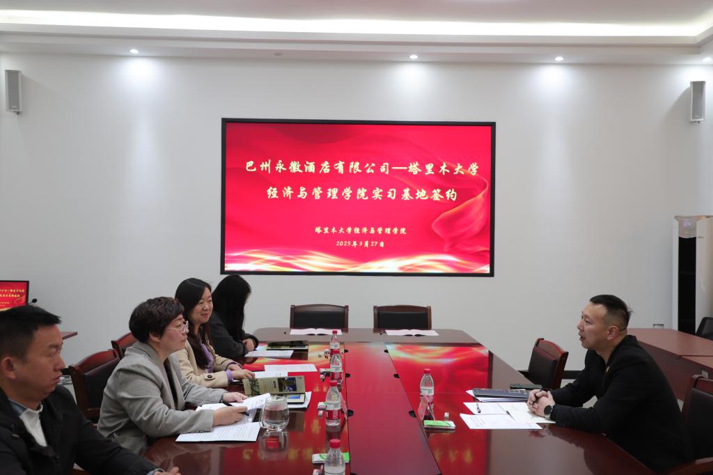 3月27日上午11时,巴州永辉酒店有限公司与经济与管理学院实习基地签约仪式在文科实验楼209会议室隆重举行。参加签约会议的人员有:巴州永辉酒店有限公司人力资源部部长陈长兴、经济与管理学院副院长顾继岩、旅游管理系教师李俊,张丹、学生办公室教师郑志伟。