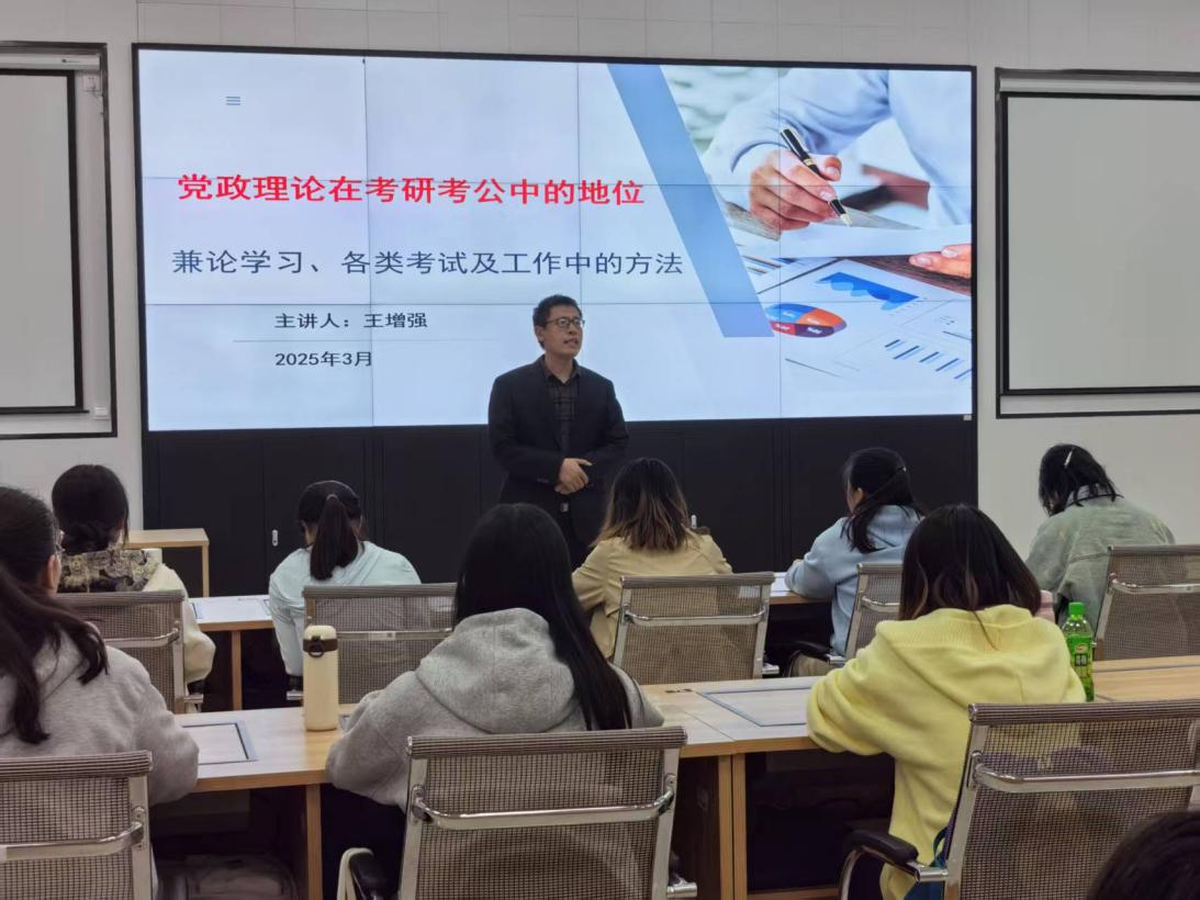 为进一步增强塔里木大学胡杨青年学子的考研考公意识,充分提升学生党政素养,2025年4月10日,经贸系学生党支部在文科实验楼503开展了以“党政理论在考研考公中的地位”为主题的讲座。