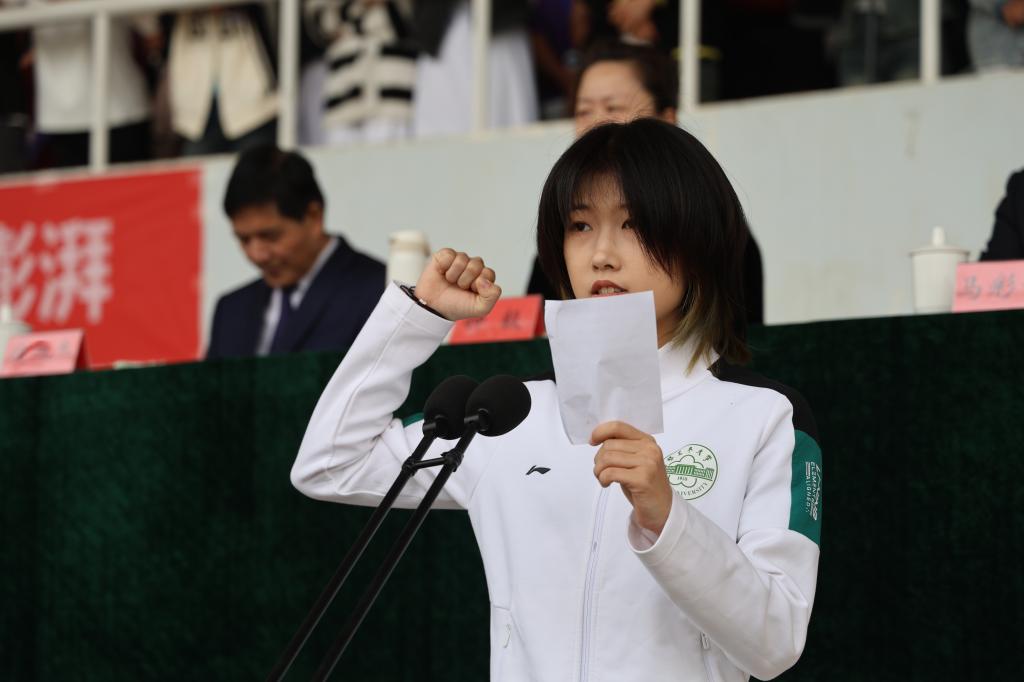 投资学2023级2班王少暄作为运动员代表宣誓发言,将严格遵守比赛纪律和竞赛规则,坚决服从裁判判决,尊重对手,赛出水平,赛出风格。