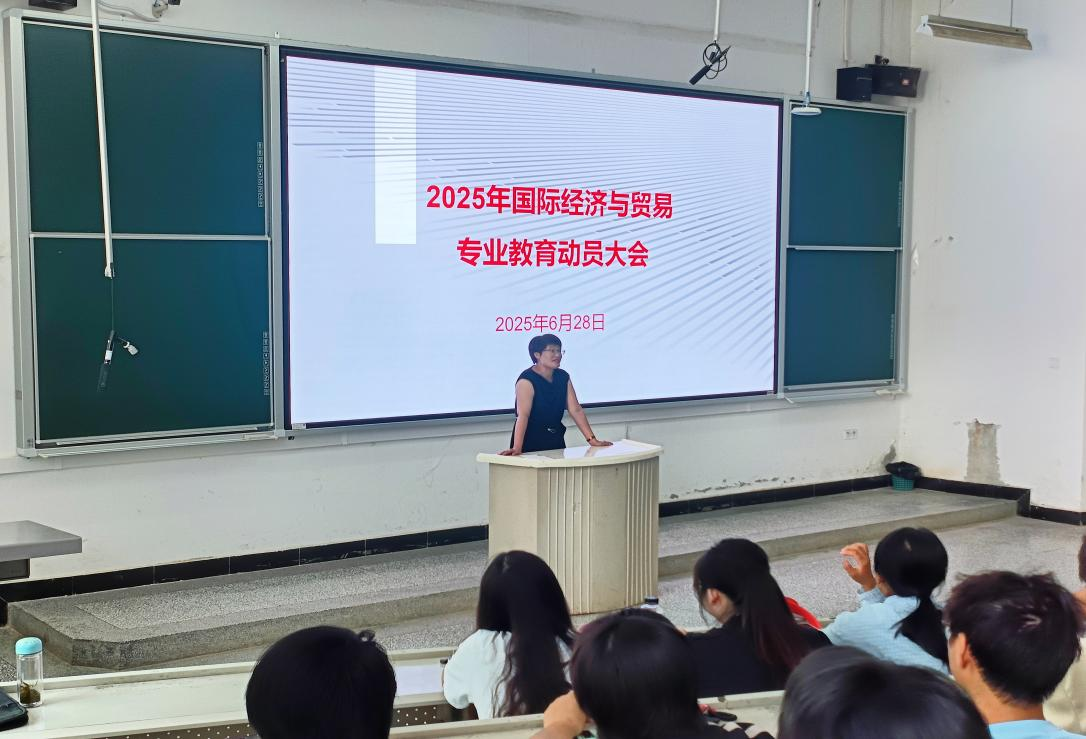 2025年6月28日,经贸系国际经济与贸易专业教育大会在综合楼阶教3成功举行。国际经济与贸易专业负责人王增强、教师代表及国际经济与贸易专业全体学生出席本次大会,经贸系副主任邢怀浩主持会议。