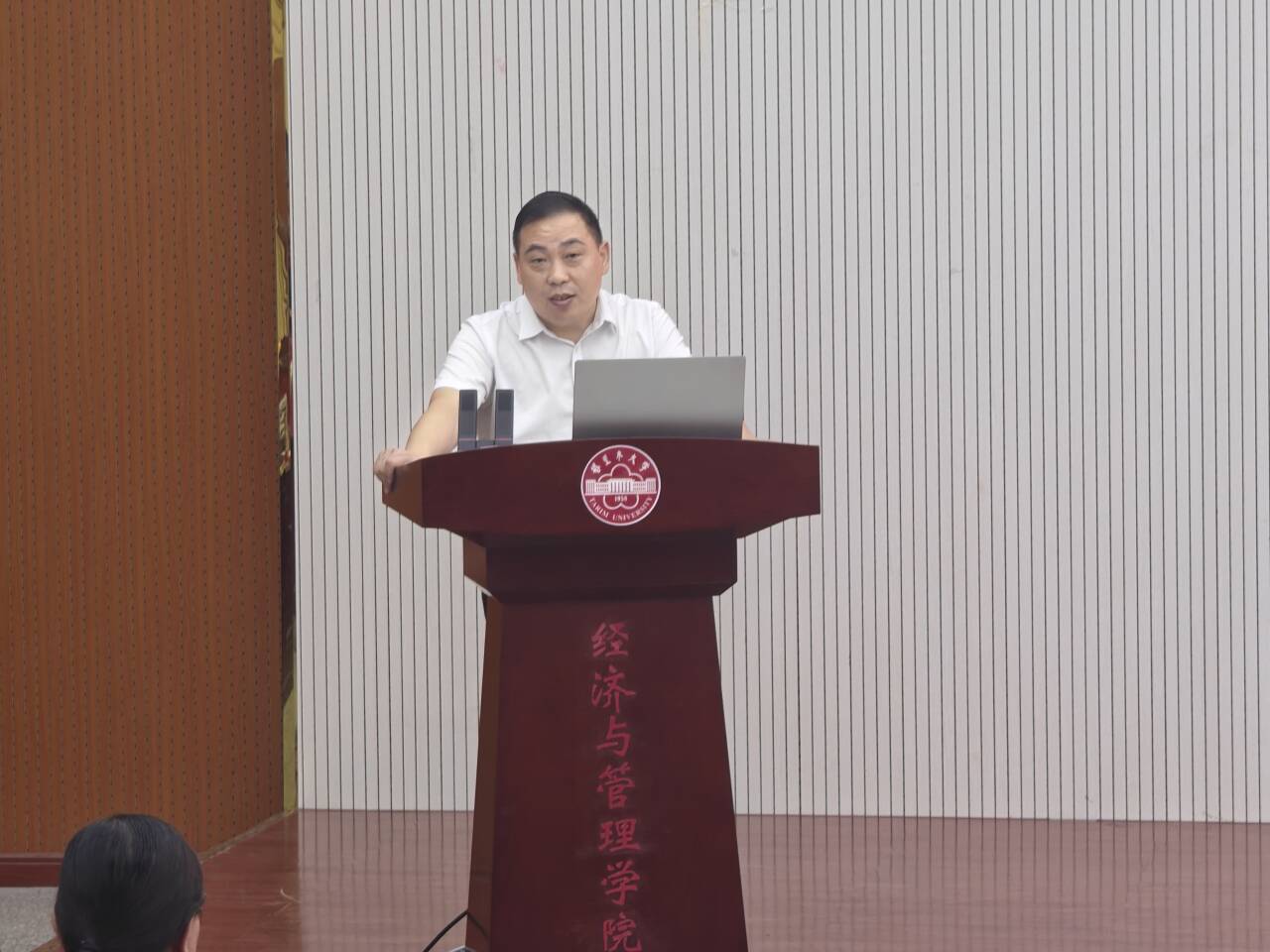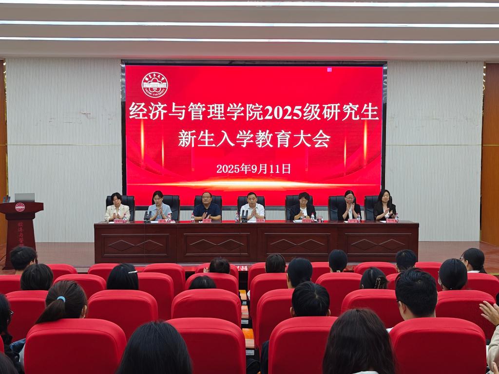 9月11日上午,经济与管理学院2025级研究生新生入学教育大会在文科实验楼504报告厅顺利举行。学院党委书记蒋志辉,党委委员、副书记陈曙,副院长顾继岩,专业负责人石晶、马爱艳、李俊、研究生导师、科研办主任王春霞及2025级全体研究生新生参加会议,大会由党委委员、副院长李博主持。