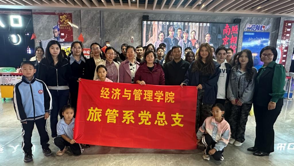 学院副院长顾继岩、旅游管理系教师及“结亲”学生共同观看了爱国主义题材影片《南京照相馆》,全体师生一同重温历史,缅怀先烈,增进师生情谊,进一步铸牢中华民族共同体意识。