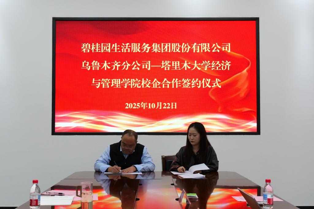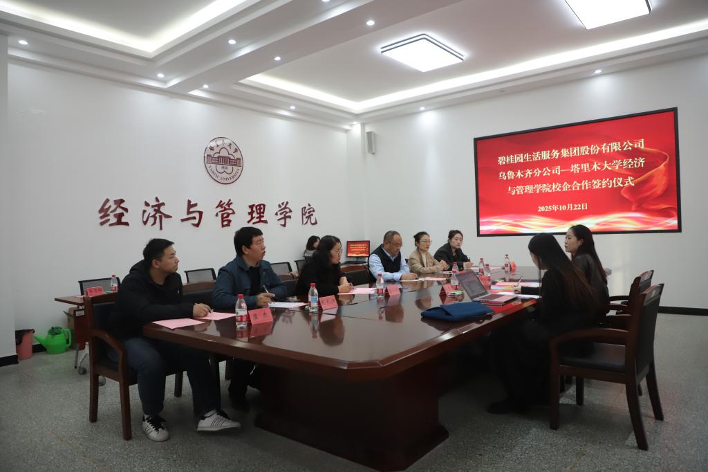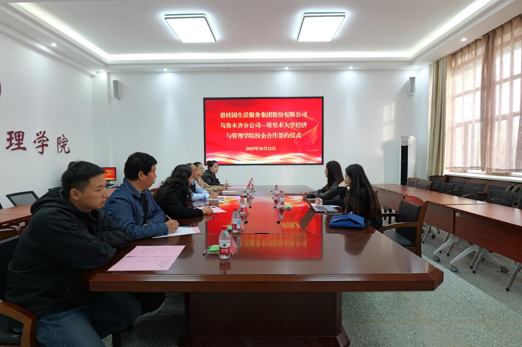 10月22日下午,经济与管理学院与碧桂园生活服务集团股份有限公司乌鲁木齐分公司校企合作签约仪式于文科实验楼212室举行。双方将围绕人才培养、实习实训、课程建设等领域展开深度合作,共同探索产教融合新路径,助力提升人才培养质量与服务区域经济发展能力。学院党委副书记陈曙、碧桂园服务乌鲁木齐分公司人力资源经理孙婷代表双方签署协议。