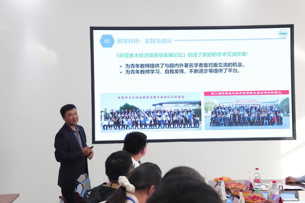 为强化学院学科人才梯队建设,助力学校打造高水平科研教学团队,10月25日下午,“智汇塔大 共创未来”塔里木大学第二届胡杨英才国际青年学者论坛经济与管理学院分论坛在文科实验楼212会议室举行。学院党委书记蒋志辉主持论坛,学校党委常委、纪委书记郑麟,学院党委副书记陈曙,学院副院长顾继岩,学院副院长李博、各系主任、书记、各办公室主任、博士教师代表及9名海内外青年博士参会。