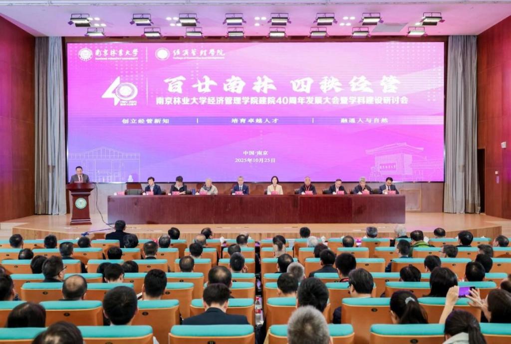 10月25日,经济与管理学院院长王学剑一行应邀赴南京,参加“南京林业大学经济管理学院建院40周年发展大会暨学科建设研讨会”。本次盛会汇聚了来自国务院学科评议组、全国多所知名高校、科研院所的专家学者、校友代表等300余人,共同探讨新时代经济管理学科的发展与创新。