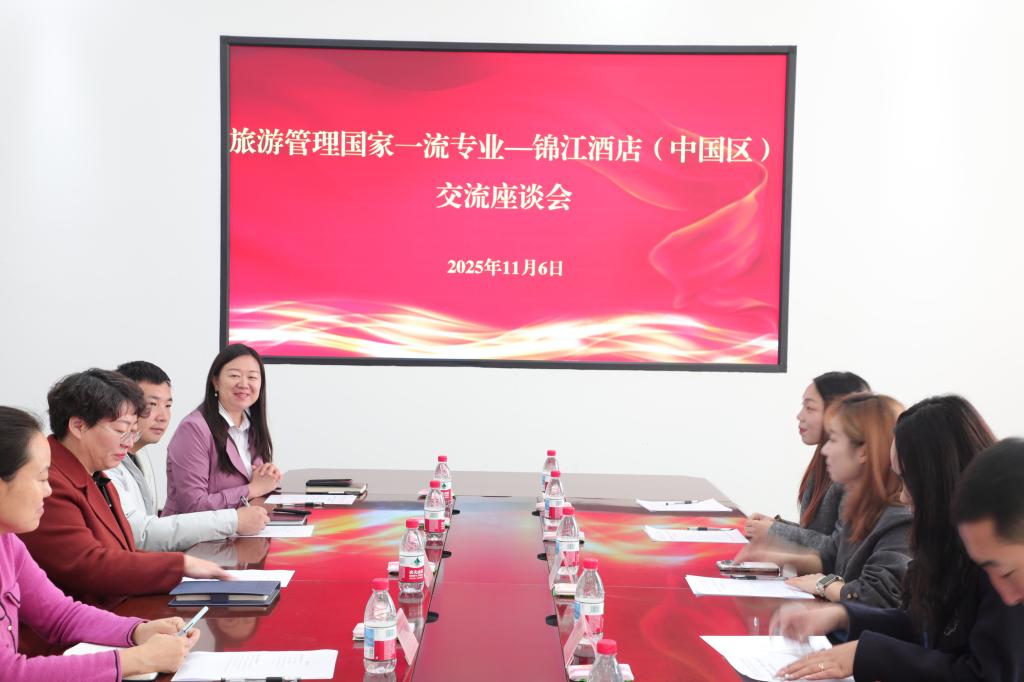 11月6日上午,锦江酒店(中国区)西北区校招负责人丁甜甜、新疆省区院长刘玲、新疆省区门店总经理贾博、锦江西北区管培生王灿一行4人来我院交流校企合作事宜,经济与管理学院副院长顾继岩、教务办主任席春玲出席会议,辅导员崔杰和旅游管理系教师代表参加。会议在文科实验楼212室召开,由旅游管理系主任李俊主持。