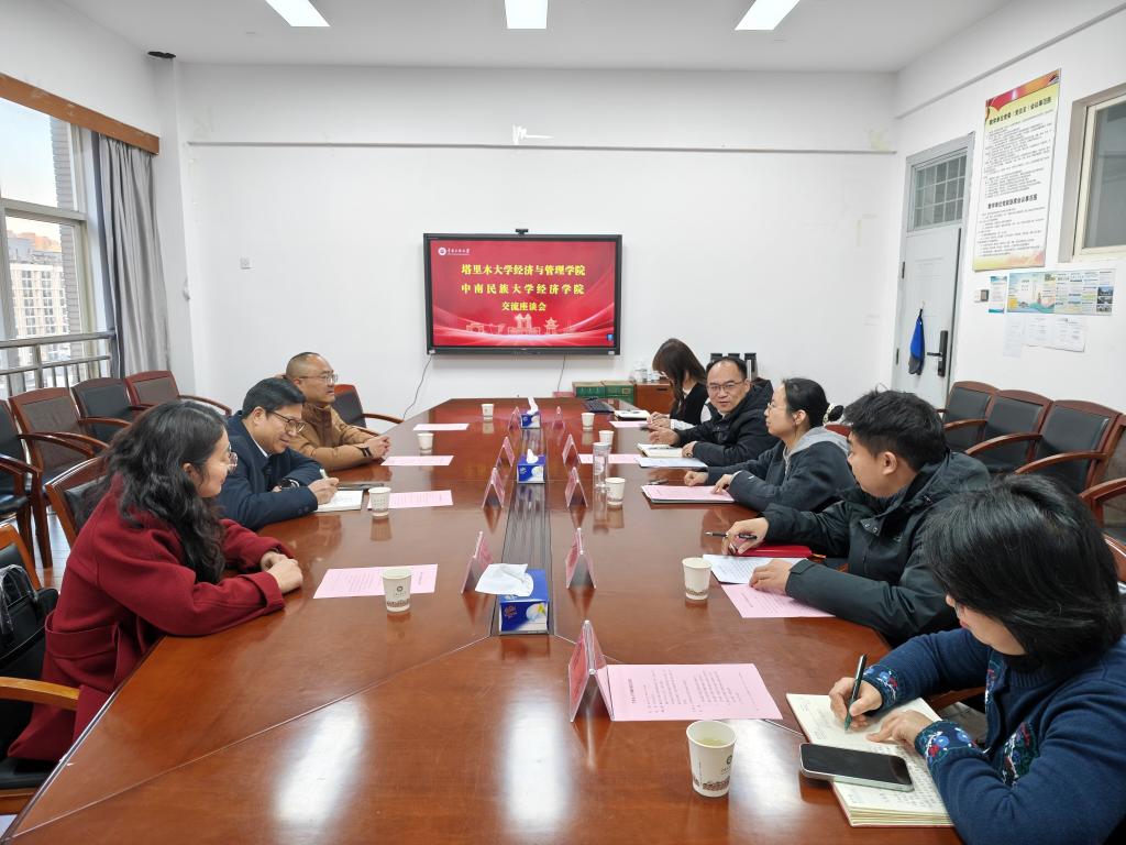 11月18日,我院党委副书记、院长王学剑率队赴中南民族大学经济学院开展交流座谈。学院党委副书记陈曙及相关工作人员一同参加。此次交流旨在深化两院合作,共商学科建设与人才培养新路径。中南民族大学经济学院党委书记郭聪、院长李波及学工队伍热情接待并参与座谈。