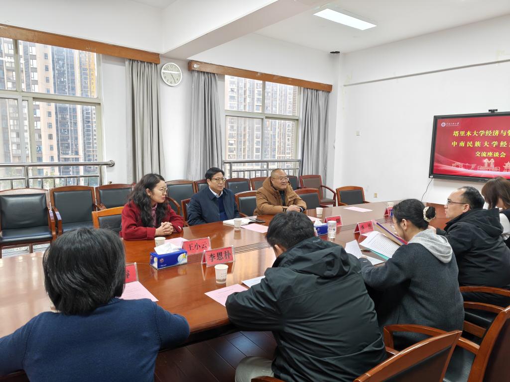 郭聪代表中南民族大学经济学院对我院代表团的到访表示热烈欢迎。他详细阐述了该院在学科特色凝练、科研平台建设、产学研协同发展等方面的创新实践与丰硕成果。李波结合该院学科发展特点,分享了在人才培养模式创新、课程体系优化等方面的经验体会。双方围绕人才培养、党建引领、学生工作体系创新等议题进行了深入研讨。