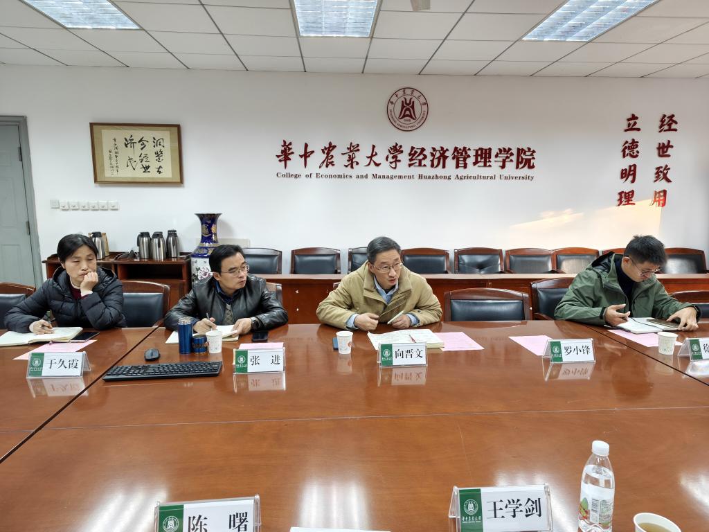 11月19日,为深化校际合作、促进学科建设与人才培养质量提升,学院党委副书记、院长王学剑一行四人赴华中农业大学经济管理学院座谈交流,华中农业大学经济管理学院党委书记向晋文、党委副书记张进、副院长于久霞、团委书记徐嘉楠参加座谈。