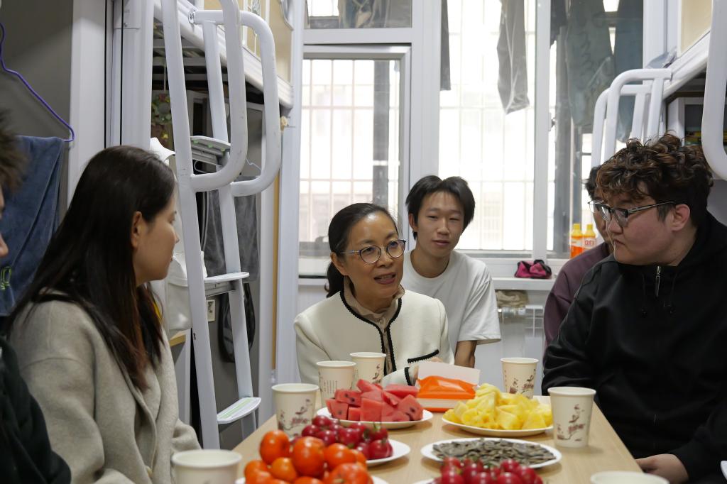 在送上暖心物资后,郑麟书记细致询问了几位少数民族同学的家庭近况、在校学习状态及未来发展规划。在了解到大家对高数学习的顾虑后,她耐心鼓励道:“高数虽有难度,但只要课堂紧跟节奏、课后用心钻研、认真梳理复习,在循序渐进下都可以顺利通过。”亲切的话语为同学们注入了学习与生活的动力。