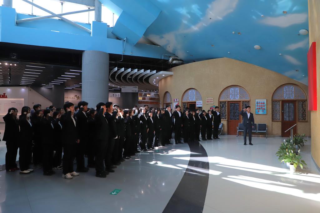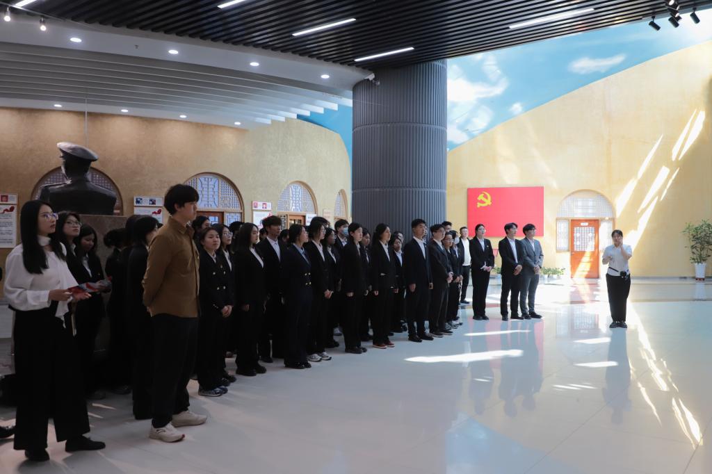进入纪念馆,全体学生党员面向党旗高举右拳庄严宣誓,以铿锵誓言坚定理想信念,牢记初心使命。
