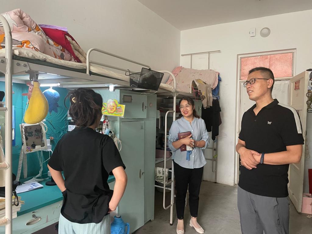 朱哲一行先后走访了西区10号、5号、6号以及8号学生宿舍,与在校同学进行了亲切交谈,耐心地询问了在校同学在学习和生活上遇到的困难和问题。叮嘱同学们要保持宿舍卫生,强化安全意识,安全用电,严格遵守宿舍管理规章制度及疫情防控规定。同时鼓励同学们要相互理解、互相包容,努力营造一个安全、整洁、文明、和谐的宿舍环境。希望同学们珍惜大学时光,充分地利用有限的学习时间,加强自身专业知识储备,为将来的实习、就业打下坚实基础。