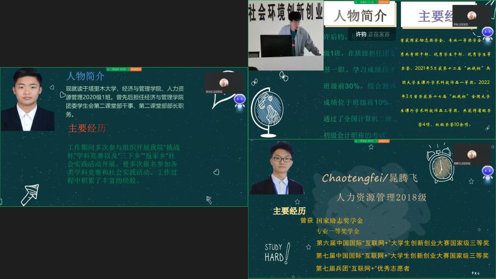 分享会的最后,岳东芹老师充分肯定了五位同学的经验总结,并就《塔里木大学经济与管理学院第九届“挑战杯”大学生课外学术科技作品竞赛的通知》以及相关文件进行了深入解读和详细分析,为同学们答疑解惑。