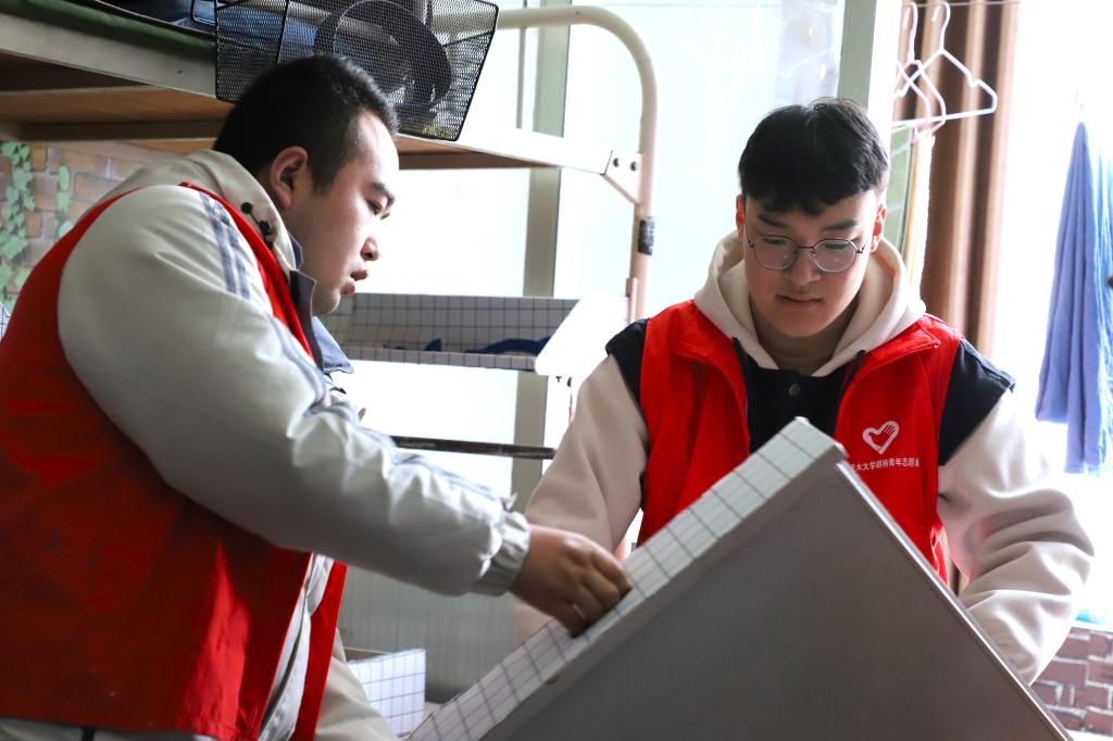 清扫过程中,同学们分工明确,以小组为单位相互配合开展迎新准备工作。确保每一间宿舍都彻底的清扫,做到地面干净、桌面整洁、窗明几净,并记录门锁情况,排查安全隐患屋内存在的问题,及时汇总上报,将每个宿舍都安排到位。此外,我院在校门口和宿舍之间也形成了专门的往返通道,为萌新们的顺利入住保驾护航。