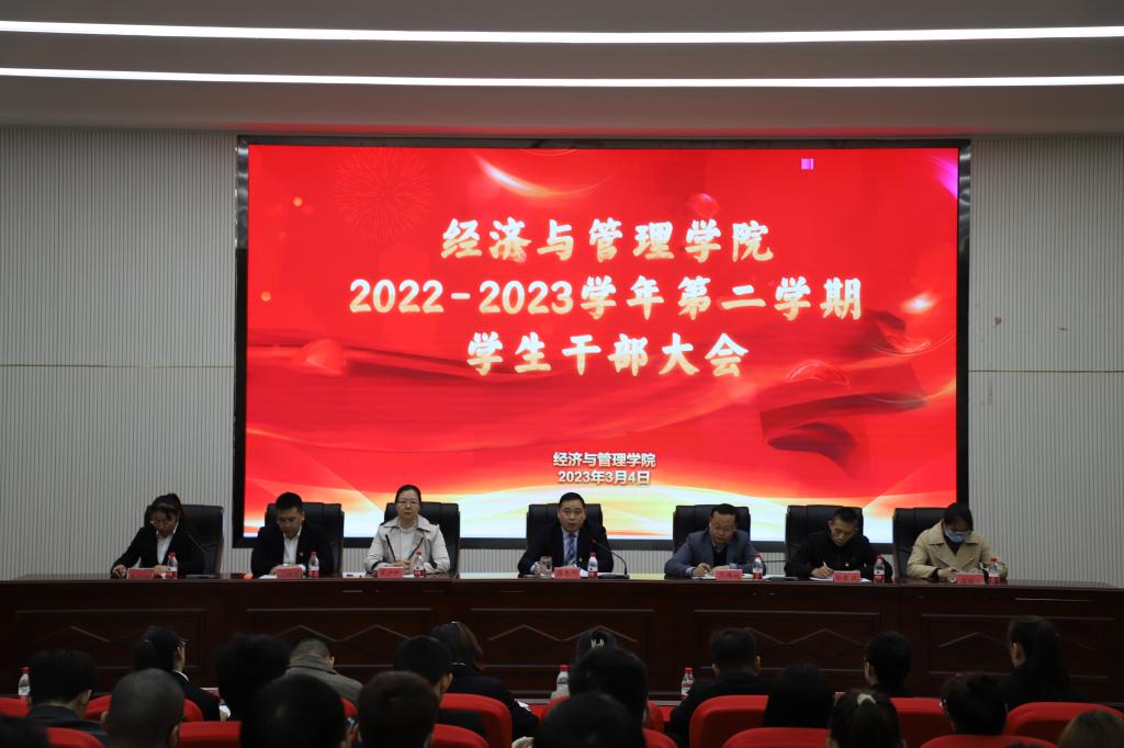 学院党委书记蒋志辉作总结发言,他指出,经管学院有着光辉的历史、良好的基础、难得的机遇,作为胡杨学子,要将胡杨精神与远大理想信念相结合。作为学生干部,要认识到自己的责任重大、使命光荣,要做到慎独、慎思、勤勉;要提高抗压能力,学习“挤时间、提效率”。他希望全体学生干部立足学院育人工作大局,敢于担当、勇于吃苦、勇做典范,努力营造积极向上、善作善成的优良学风,在实践中不断锻炼和成就自己,为所在集体、为学院作出更加积极的贡献。