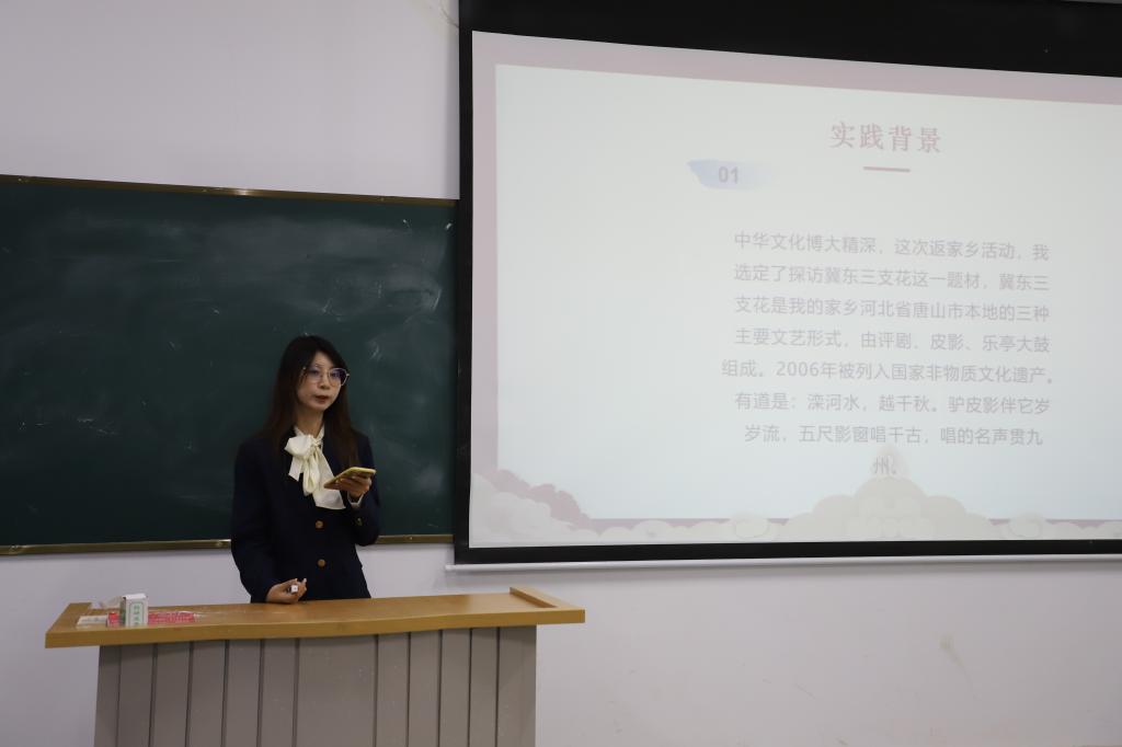 “广大青年要用脚去丈量祖国大地”个人组评委学院学办主任王小云强调到,她指出:“返家乡社会实践活动旨在组织大学生走进家乡、感受家乡魅力、把对祖国的热爱融汇在自己的理想中,胡杨学子们要充分利用各类实践活动提升自己的综合实践能力,让青春在全面建设社会主义现代化国家的火热实践中绽放绚丽之花。”