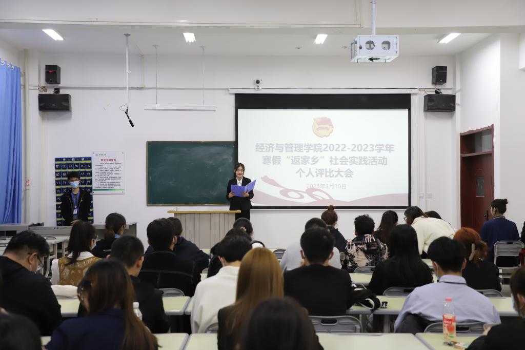 为引导大学生通过返乡实践更好地了解国情、感知社会、热爱家乡、服务群众,紧跟党走与人民群众相结合的成才道路,总结返家乡实践经验,经济与管理学院团委于3月10日21点举行2022-2023学年寒假“返家乡”社会实践评比大会。评比答辩分为团队组和个人组进行,共有33个团队和27名个人参加。