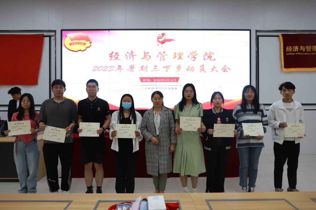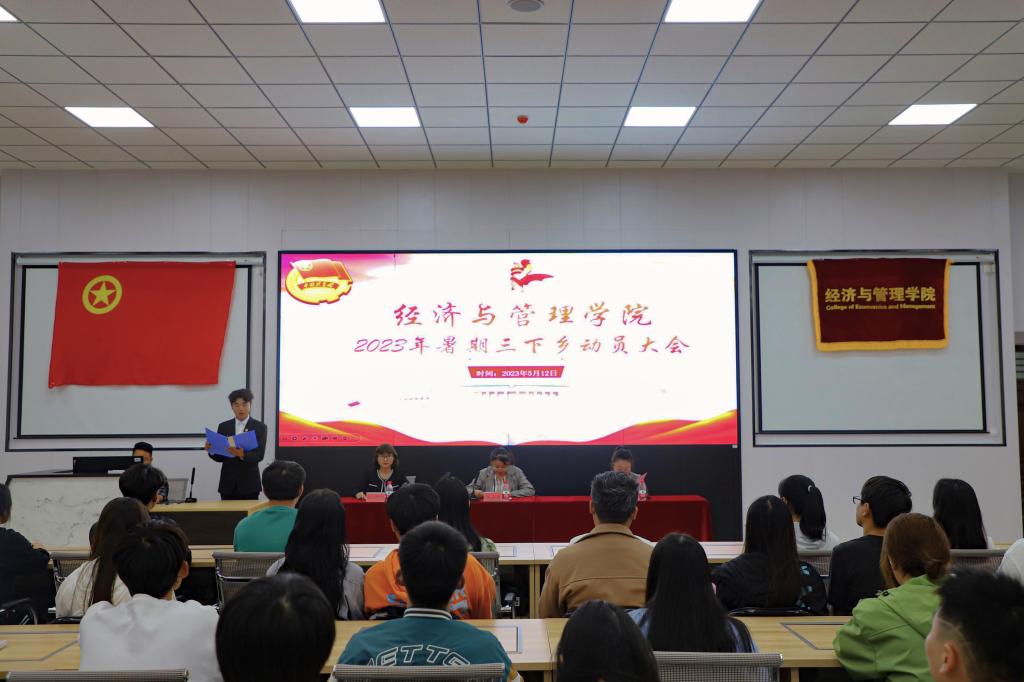 为深入学习宣传贯彻习近平新时代中国特色社会主义思想,贯彻落实习近平总书记关于青年工作的重要思想,鼓励广大青年学生在社会实践中受教育、长才干、作贡献。5月13日晚,经济与管理学院在文科实验楼503室召开2023年暑期“三下乡”动员大会。学院党委委员、学办主任王小云,团委副书记热纳汗·阿布力米提,辅导员宋哲坤参加了大会。