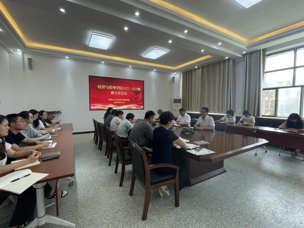 为保障学生开学返校和迎新工作顺利开展,加强班主任队伍建设,8月21日上午,学院在文科实验楼209室召开2022级、2023级班主任会议,就近期重点任务作出安排部署。学院党委书记蒋志辉出席,2022级、2023级班主任及全体辅导员参加,会议由学院党委副书记、纪委书记朱哲主持。
